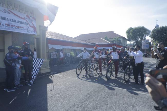 ASAHAN, sln70-news.com – Bupati Asahan H Surya BSc bersama Kapolres Asahan AKBP Nugroho Dwi Karyanto, SIK dan Unsur Forum Komunikasi Pimpinan Daerah (Forkopimda) Kabupaten Asahan, beberapa OPD serta Jajaran Polres Asahan turut serta dalam memeriahkan HUT Bhayangkara ke 75 tingkat Polres Asahan dengan menggelar Gowes Sehat bersama Forkopimda, Rabu (30/6/2021).