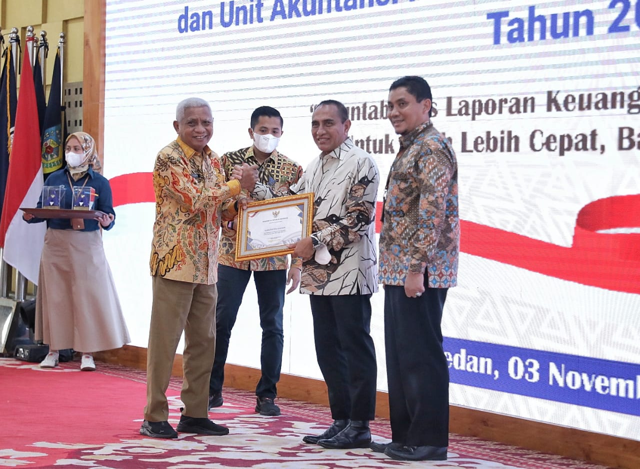 ASAHAN, sln70-news.com – Penghargaan tersebut diserahkan langsung oleh Gubernur Sumatera Utara Edy Rahmayadi dalam Rakor Pemerintah Daerah dan Unit Akuntansi Pembantu Pengguna Anggaran Wilayah 2022 di Sumut, di Aula Tengku Rizal Nurdin, Kediaman Dinas Gubernur, Jalan Jend Sudirman Nomor 41, Medan, Kamis (3/11).