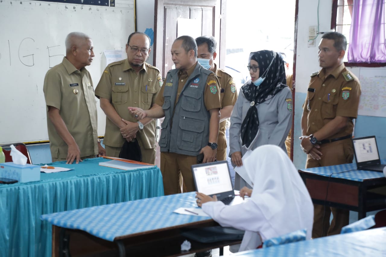 ASAHAN, sln7O-news.com – Bupati Asahan H. Surya, BSc didampingi Sekretaris Daerah Drs. John Hardi Nasution, MSi, Kepala Dinas Pendidikan , Kepala Dinas Kominfo (Mewakili) meninjau pelaksanaan Asesmen Nasional Berbasis Komputer (ANBK) tingkat Sekolah Dasar (SD) di SD 014646 Air Teluk Kiri Kecamatan Teluk Dalam dan SD 013837 Sei Alim Ulu, Kecamatan Air Batu.