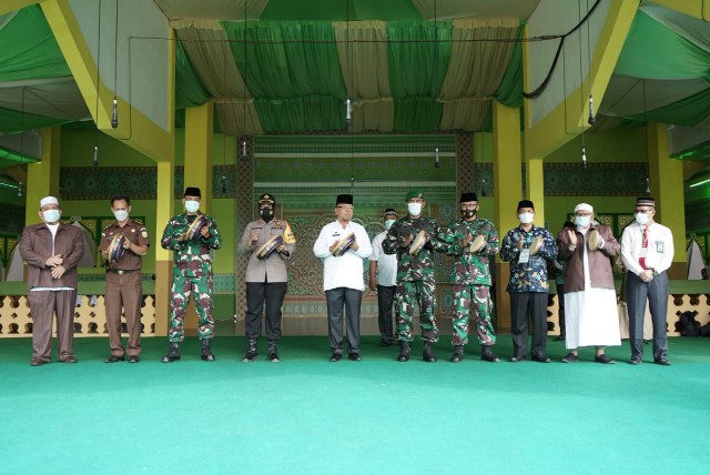 Plh Bupati Asahan, Wakapolres Asahan, Mewakili Dandim 0208/Asahan, Mewakili Danlanal Tanjung Balai Asahan, Mewakili Danyon 126/KC, Mewakili Kajari Asahan, Kakankemenag Kabupaten Asahan, Ketua MUI Kabupaten Asahan dan Ketua Imtaq Kabupaten Asahan secara bersama memukul Rebana menandakan Festival Seni Nasyid Tingkat Kabupaten Asahan Tahun 2021 telah resmi dibuka. (Wiku)