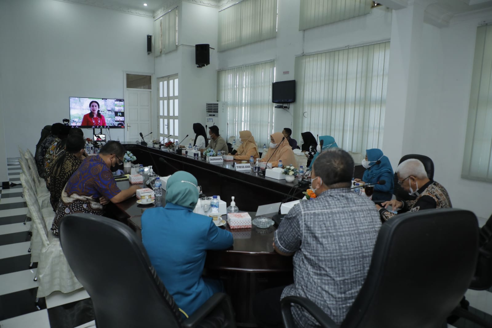 Pemerintah Kabupaten Asahan yang mengikuti Peringatan HAN 2021 secara virtual ini di Aula Mawar Kantor Bupati Asahan yakni Bupati Asahan, Wakil Bupati Asahan, Asisten Administrasi Umum, Ketua TP PKK Kabupaten Asahan, Wakil Ketua TP PKK Kabupaten Asahan, Kepala Dinas P2KBP3A Kabupaten Asahan, KPAD Kabupaten Asahan dan tamu undangan lainnya. (WK)