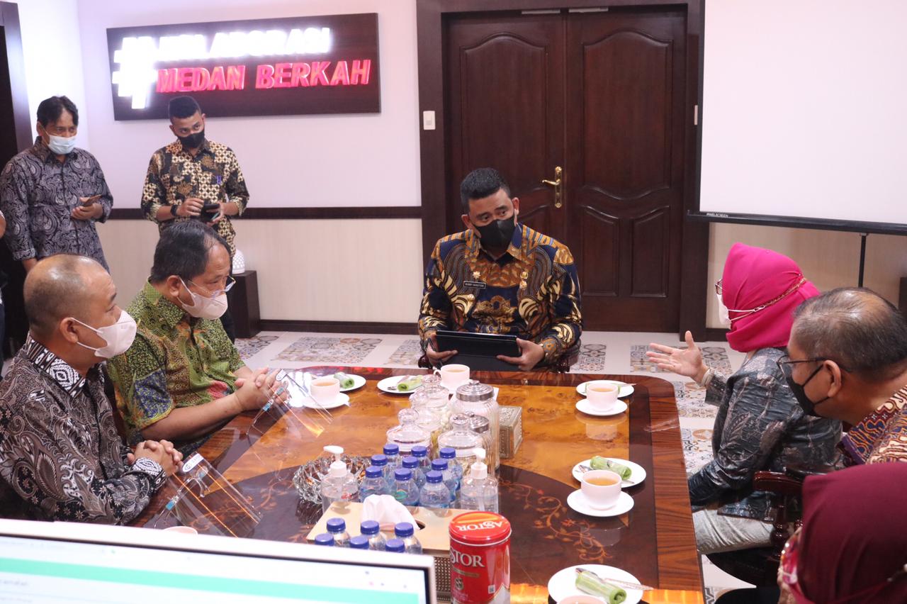 Panitia Pelaksana Harganas Tingkat Kota Medan, Usma Polita Nasution yang juga Kadis PP dan KB, dengan Wali kota Medan, Bobby Nasution, Kamis (24/6) di ruang kerja wali kota.