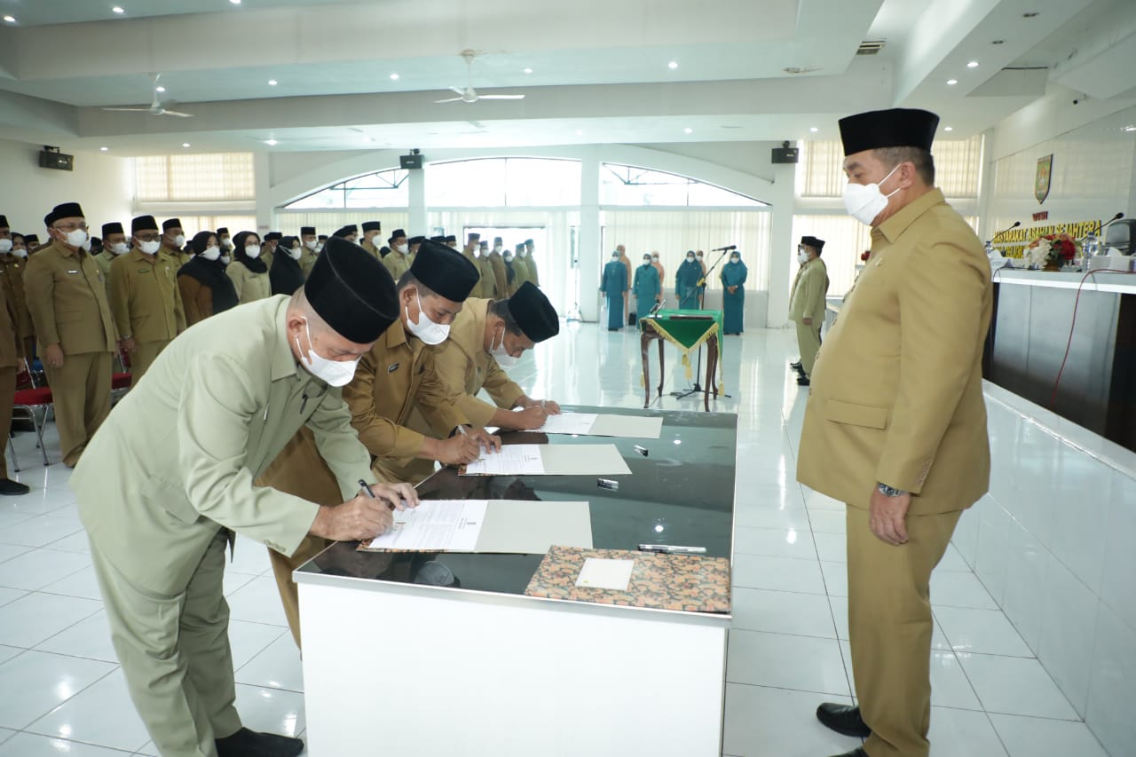 “Berpedoman pada ketentuan tersebut, maka saya sebagai Pejabat Pembina Kepegawaian, kembali mengambil sumpah dan melantik para pejabat yang mengalami perubahan nomenklatur jabatannya atau perubahan fungsi dan tugas jabatan, selain itu pengambilan sumpah dan pelantikan ini sebagai upaya pembinaan karier untuk meningkatkan pencapaian kinerja perangkat daerah”, harap Wakil Bupati